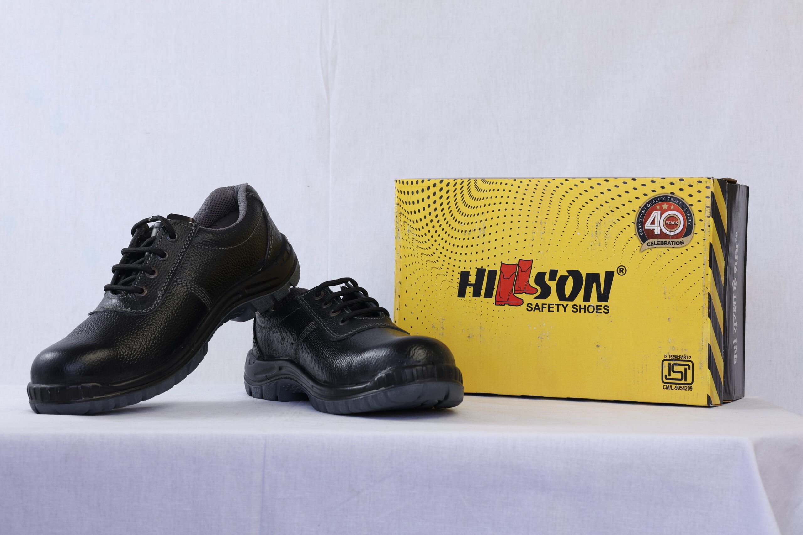 Hillson Panther ISI marked safety shoe is made up of fully molded PU sole in dual-density which provides good Anti-slip, anti- Penetration, Anti-abrasion properties and are resistant to mild acid, alkalies and oils the upper is designed from Buff black leather in Barton print, The eyelets are made up of powder-coated Brass metals, the insole is made up of textile fabric with water absorption & Desorption Features which makes it suitable for Engineering, Petrochemical, Manufacturing, Aluminium & Copper industry, Steel Plant Industry, Refinery Industry & Automobile Industry, etc.